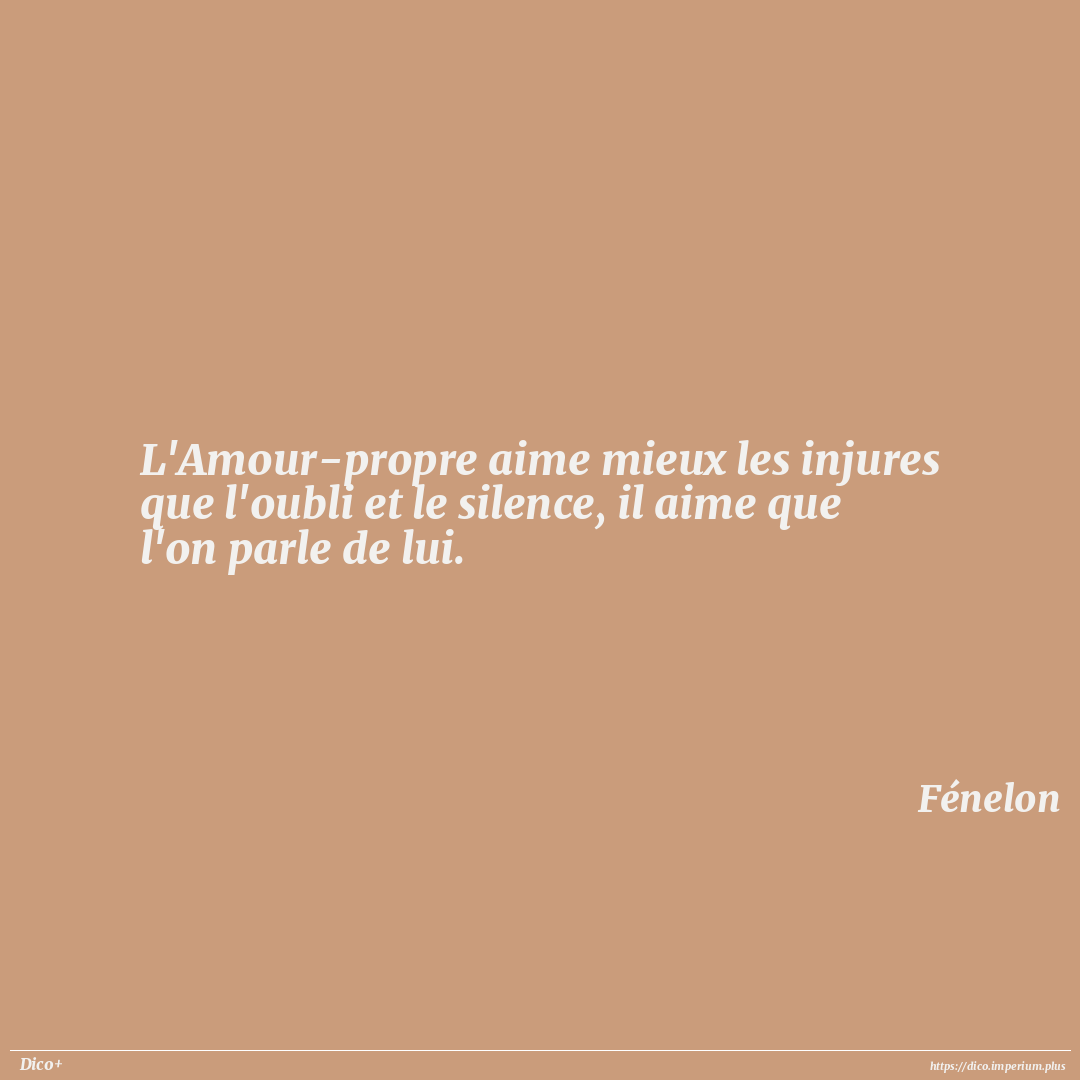 L'Amour-propre aime mieux les injures que l'oubli et le silence, il aime que l'on parle de lui.