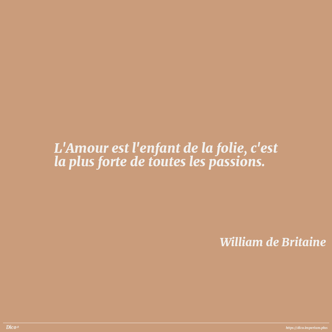 L'Amour est l'enfant de la folie, c'est la plus forte de toutes les passions.