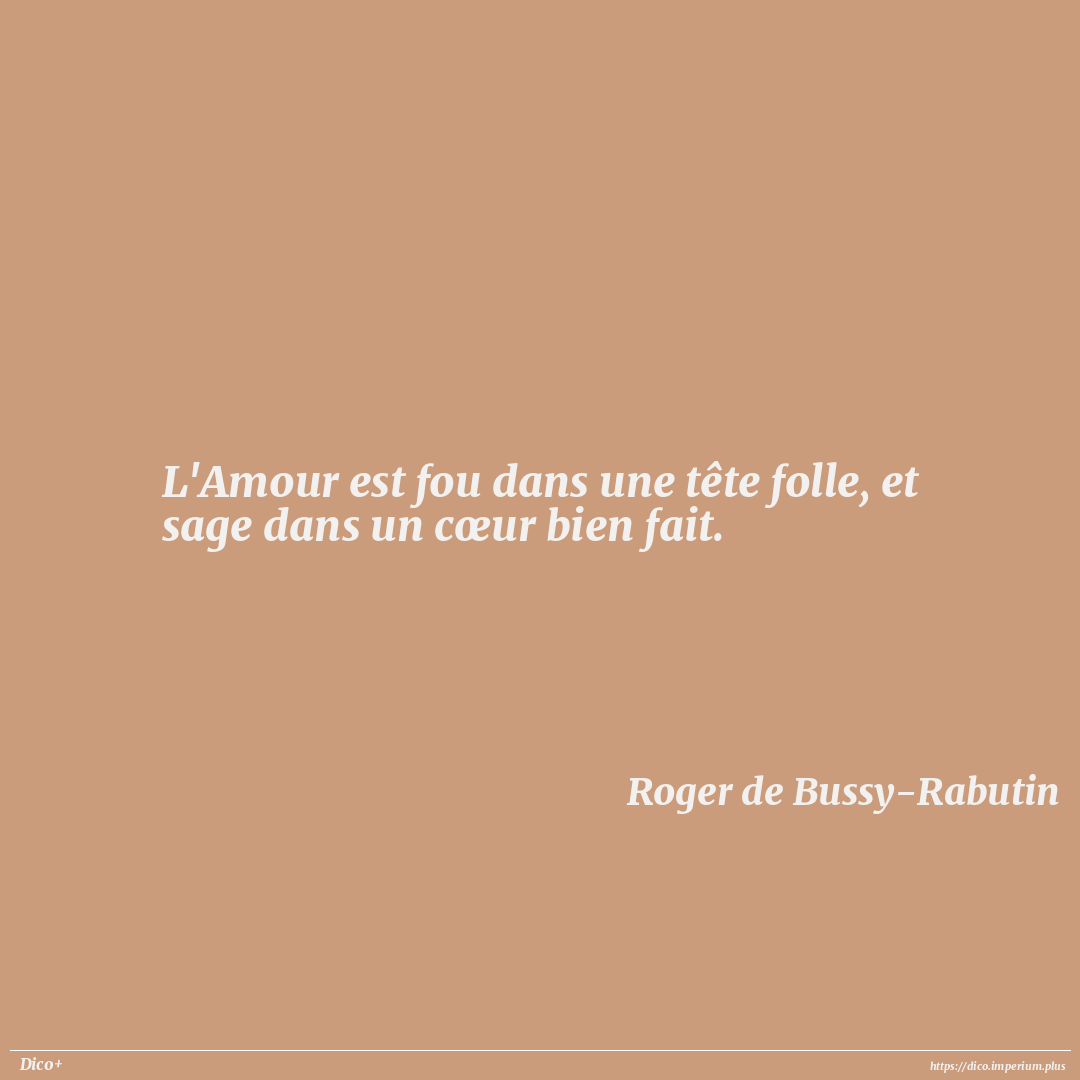 L'Amour est fou dans une tête folle, et sage dans un cœur bien fait.