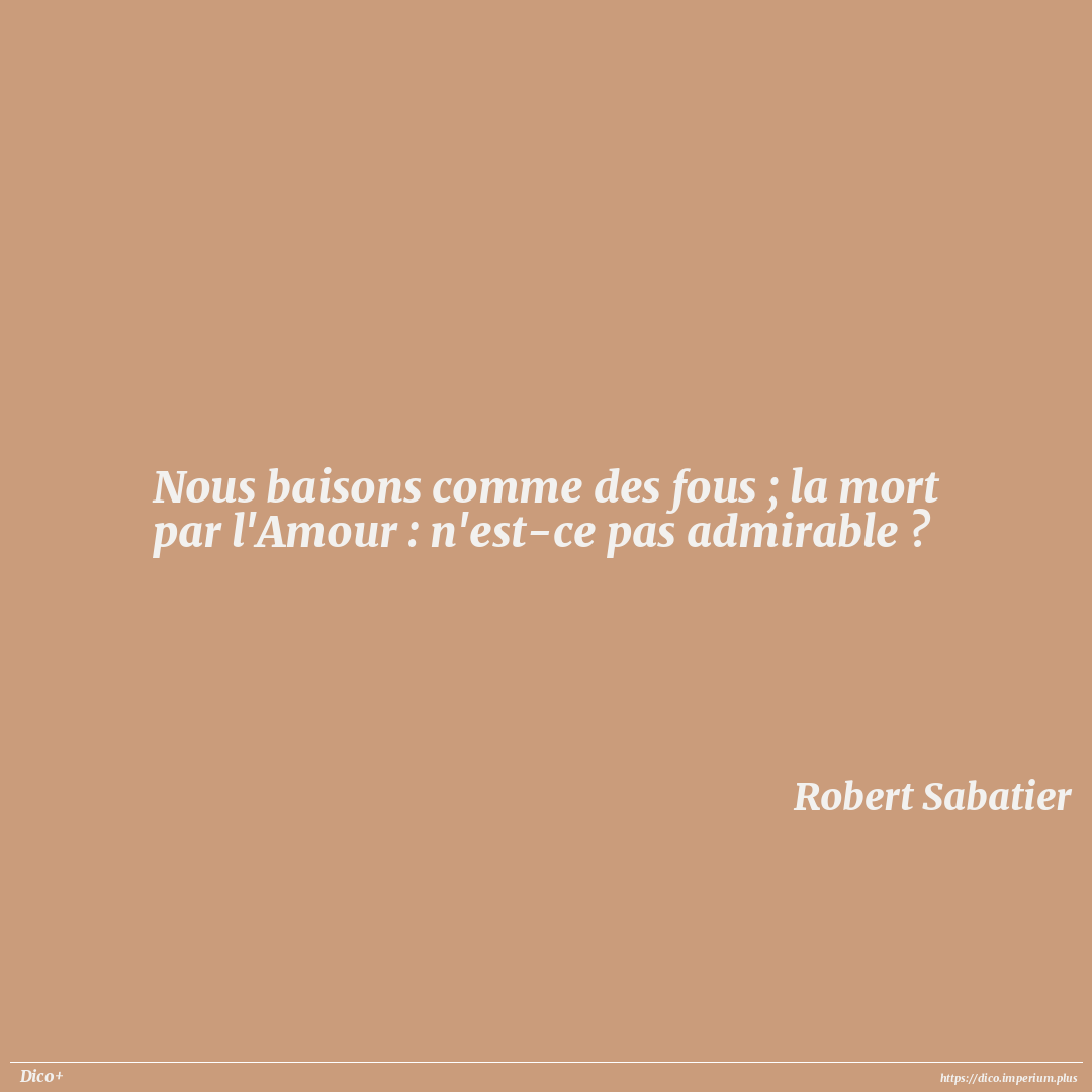 Nous baisons comme des fous ; la mort par l'Amour : n'est-ce pas admirable ?