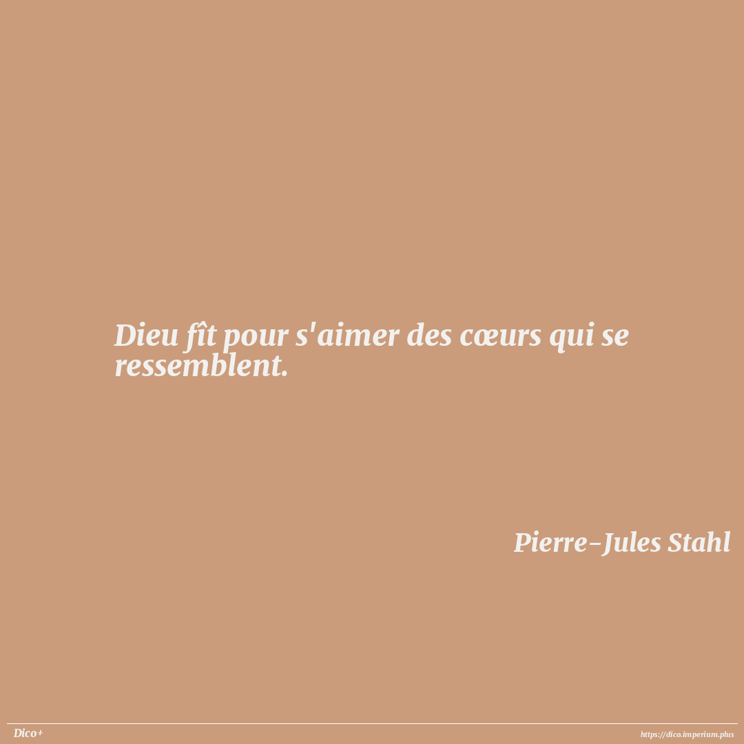 Dieu fît pour s'aimer des cœurs qui se ressemblent.