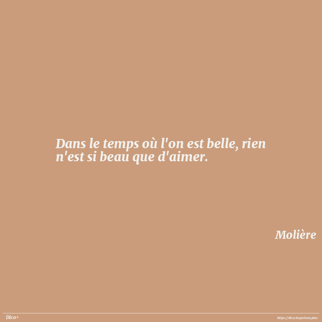 Dans le temps où l'on est belle, rien n'est si beau que d'aimer.