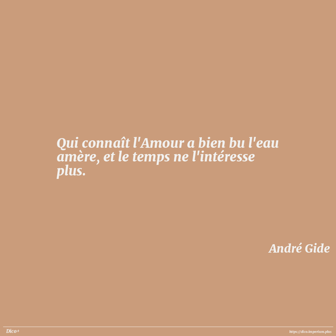 Qui connaît l'Amour a bien bu l'eau amère, et le temps ne l'intéresse plus.