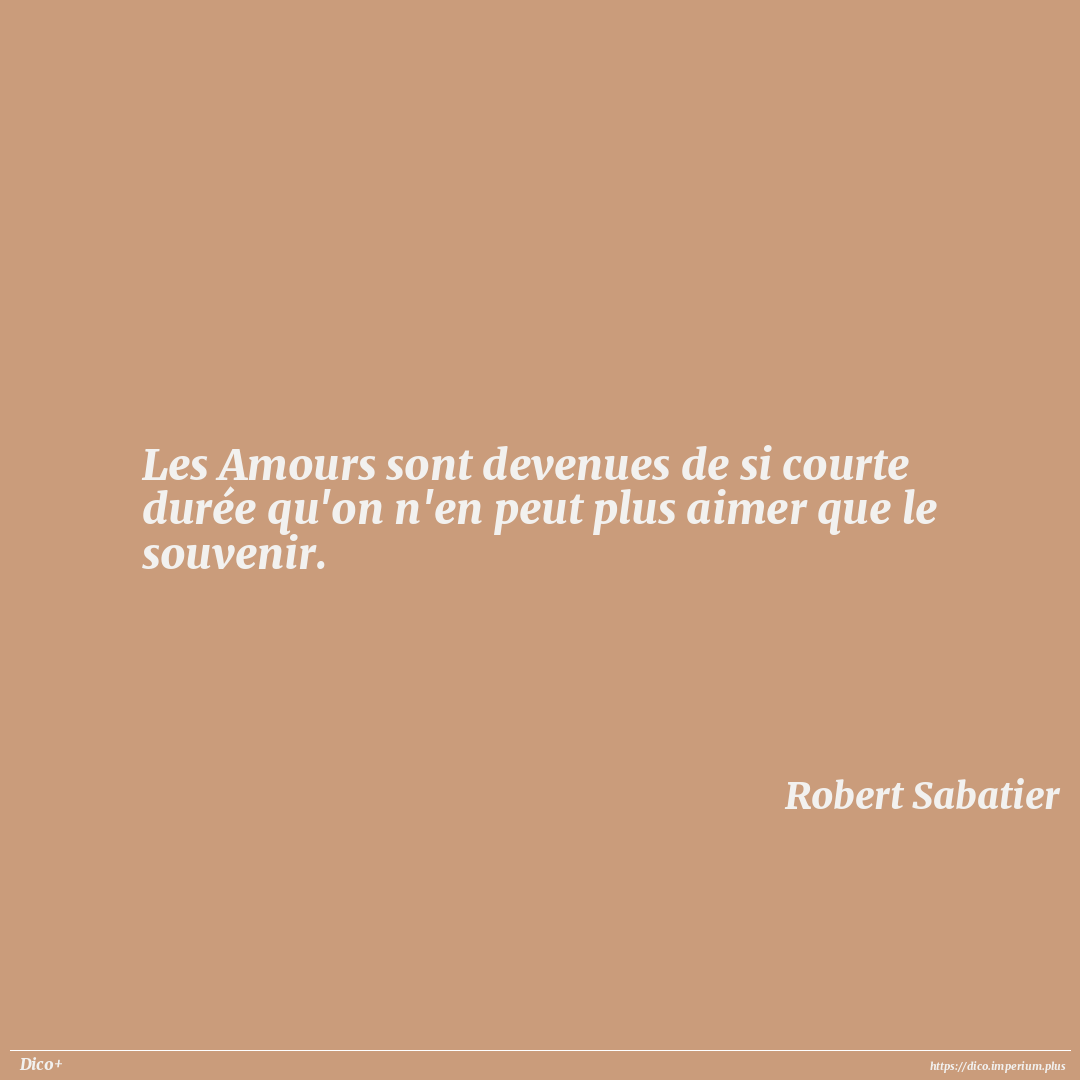Les Amours sont devenues de si courte durée qu'on n'en peut plus aimer que le souvenir.