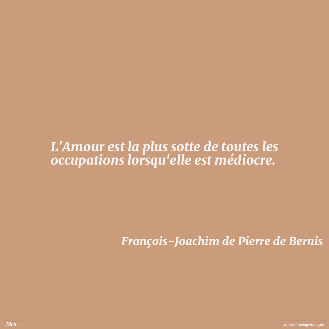 L'Amour est la plus sotte de toutes les occupations lorsqu'elle est médiocre.
