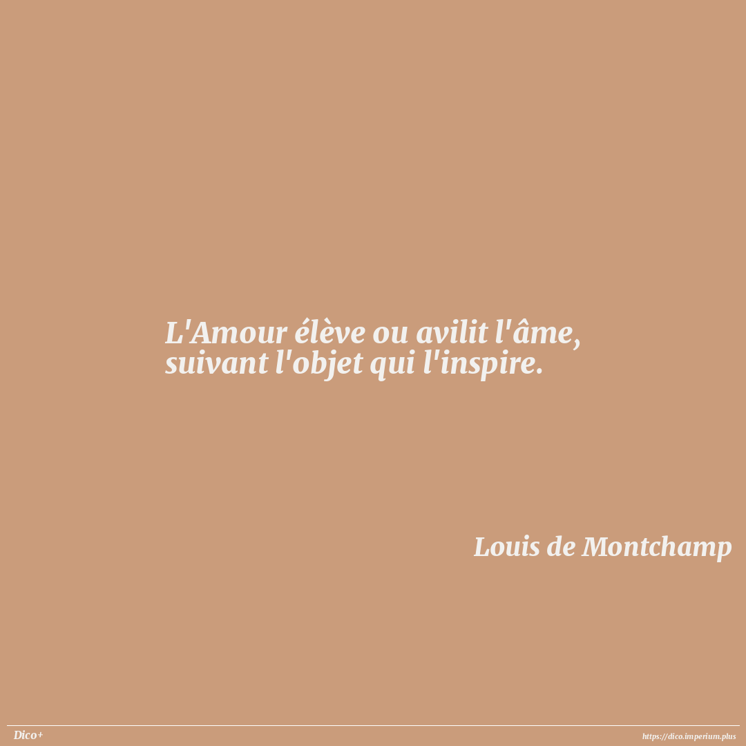 L'Amour élève ou avilit l'âme, suivant l'objet qui l'inspire.