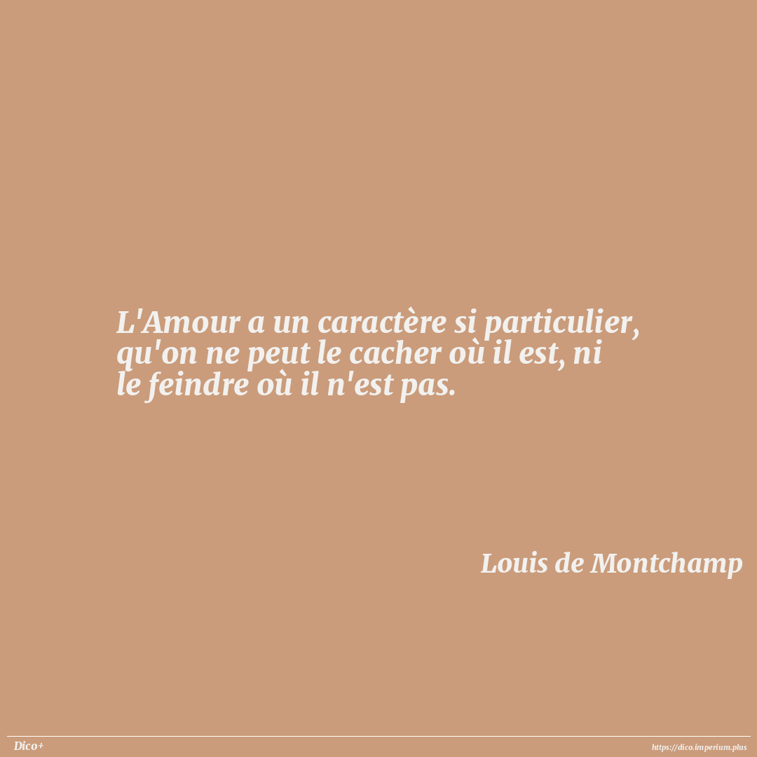L'Amour a un caractère si particulier, qu'on ne peut le cacher où il est, ni le feindre où il n'est pas.