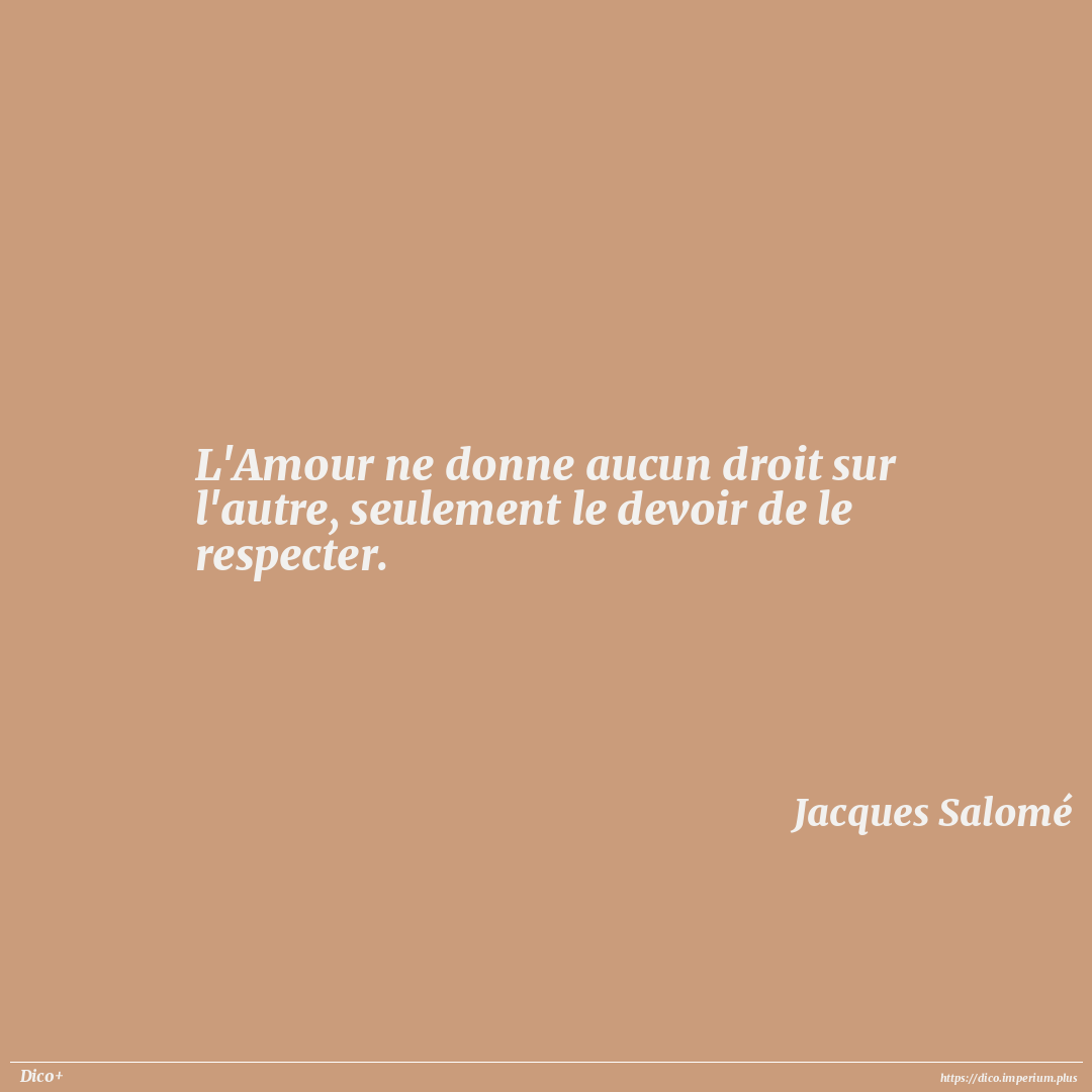 L'Amour ne donne aucun droit sur l'autre, seulement le devoir de le respecter.
