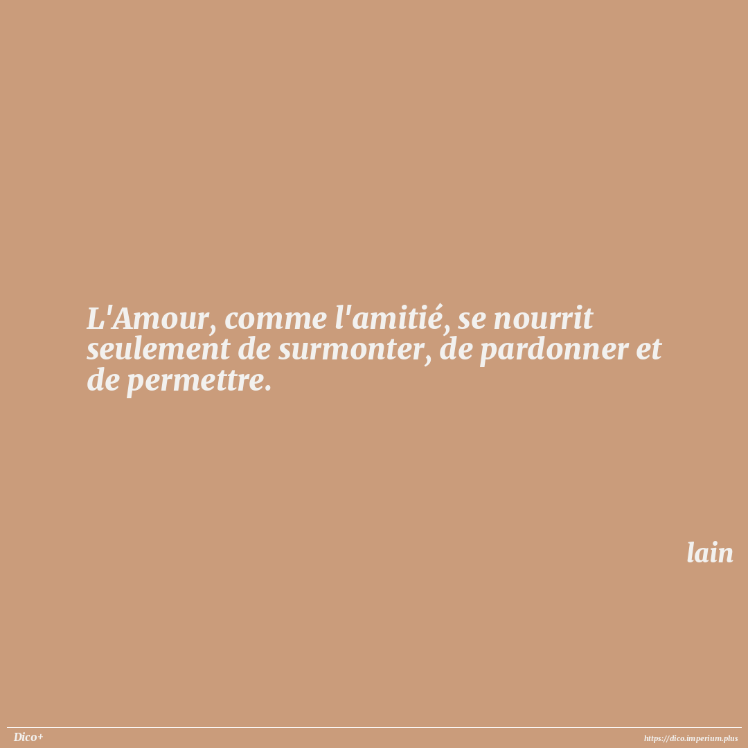 L'Amour, comme l'amitié, se nourrit seulement de surmonter, de pardonner et de permettre.