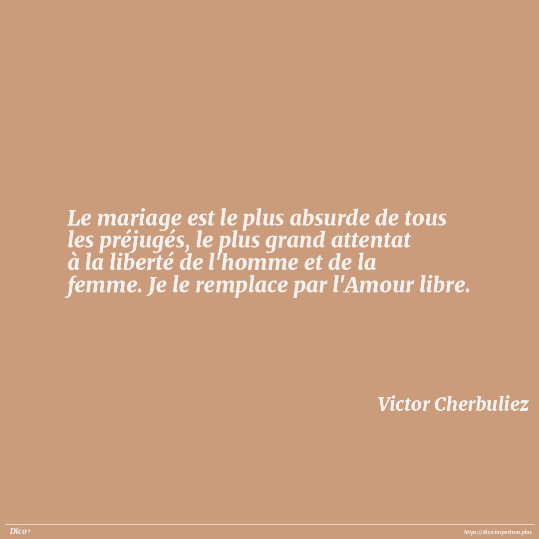 Le mariage est le plus absurde de tous les préjugés, le plus grand attentat à la liberté de l'homme et de la femme. Je le remplace par l'Amour libre.