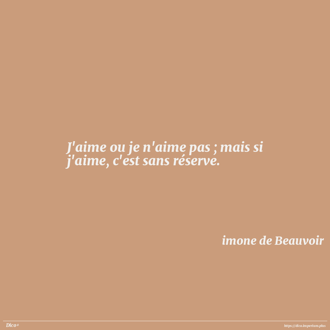 J'aime ou je n'aime pas ; mais si j'aime, c'est sans réserve.