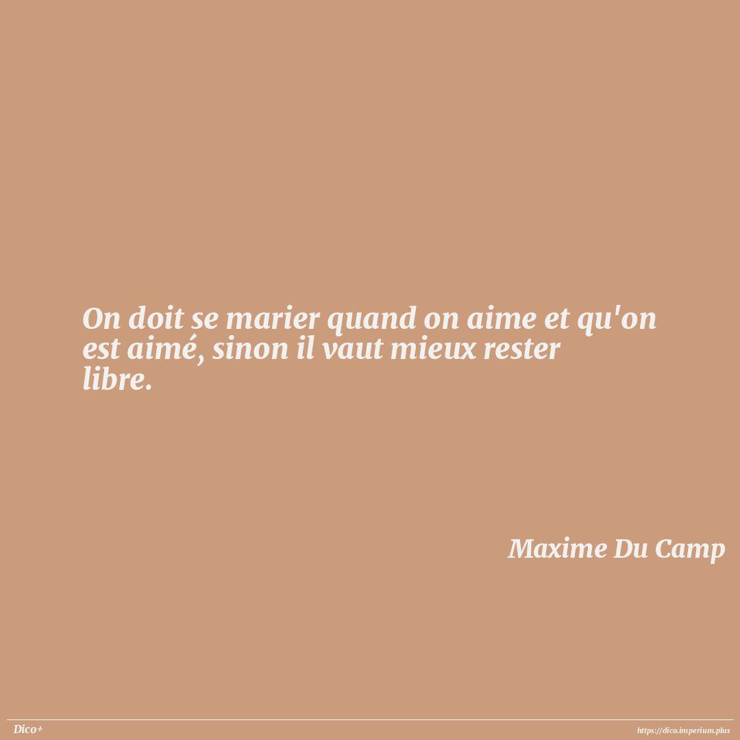 On doit se marier quand on aime et qu'on est aimé, sinon il vaut mieux rester libre.