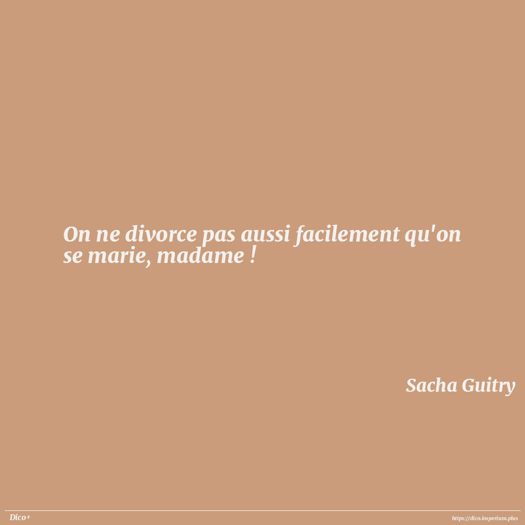 On ne divorce pas aussi facilement qu'on se marie, madame !