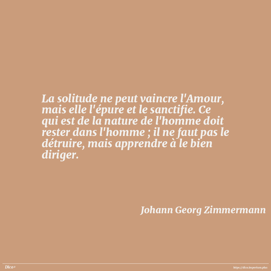 La solitude ne peut vaincre l'Amour, mais elle l'épure et le sanctifie. Ce qui est de la nature de l'homme doit rester dans l'homme ; il ne faut pas le détruire, mais apprendre à le bien diriger.