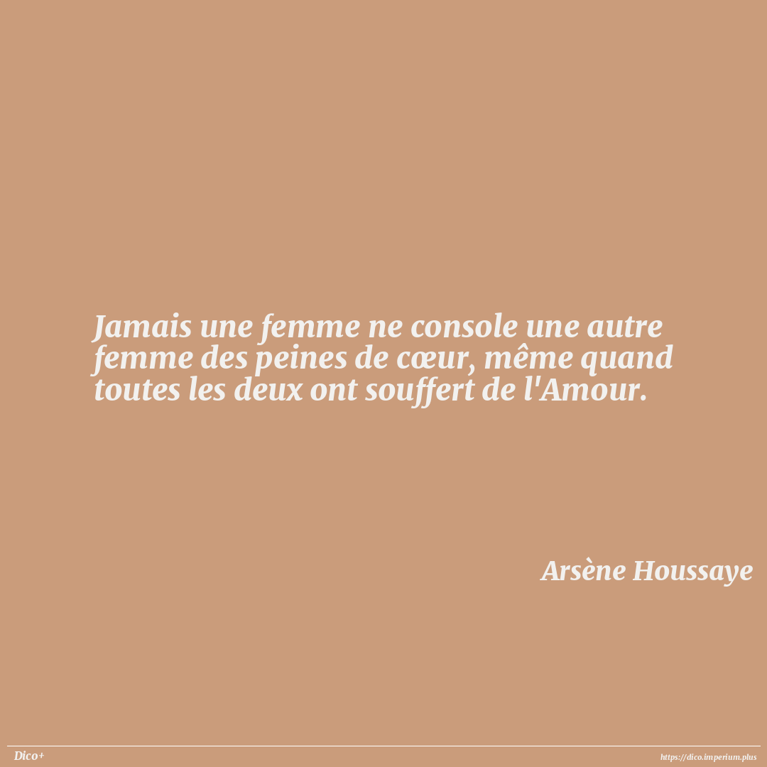 Jamais une femme ne console une autre femme des peines de cœur, même quand toutes les deux ont souffert de l'Amour.