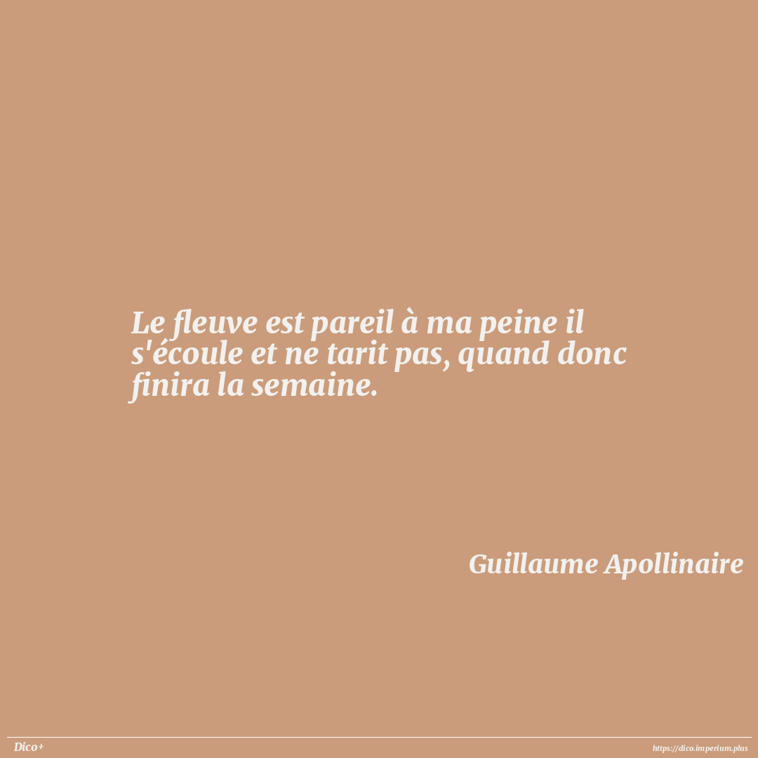 Le fleuve est pareil à ma peine il s'écoule et ne tarit pas, quand donc finira la semaine.