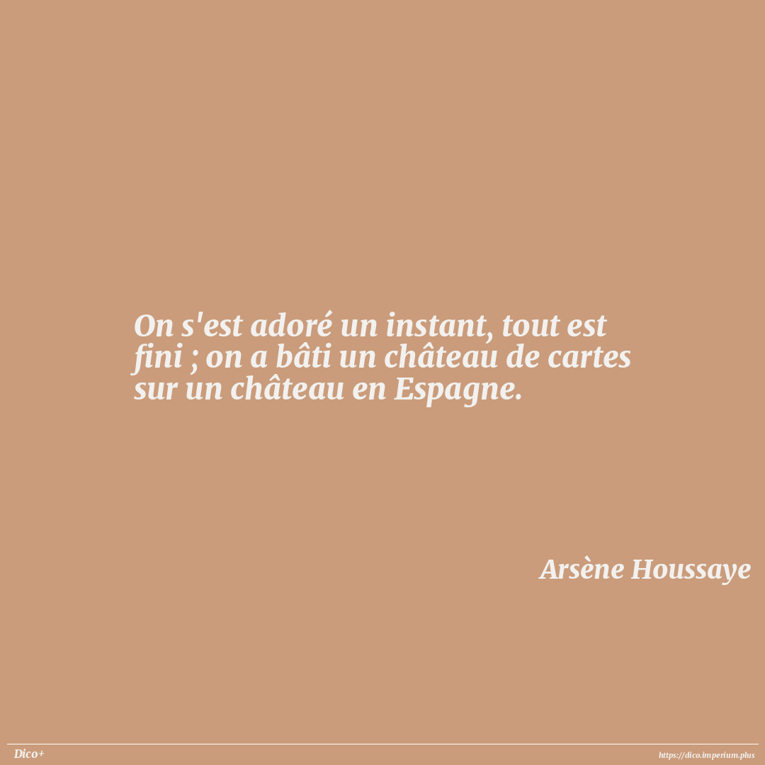 On s'est adoré un instant, tout est fini ; on a bâti un château de cartes sur un château en Espagne.