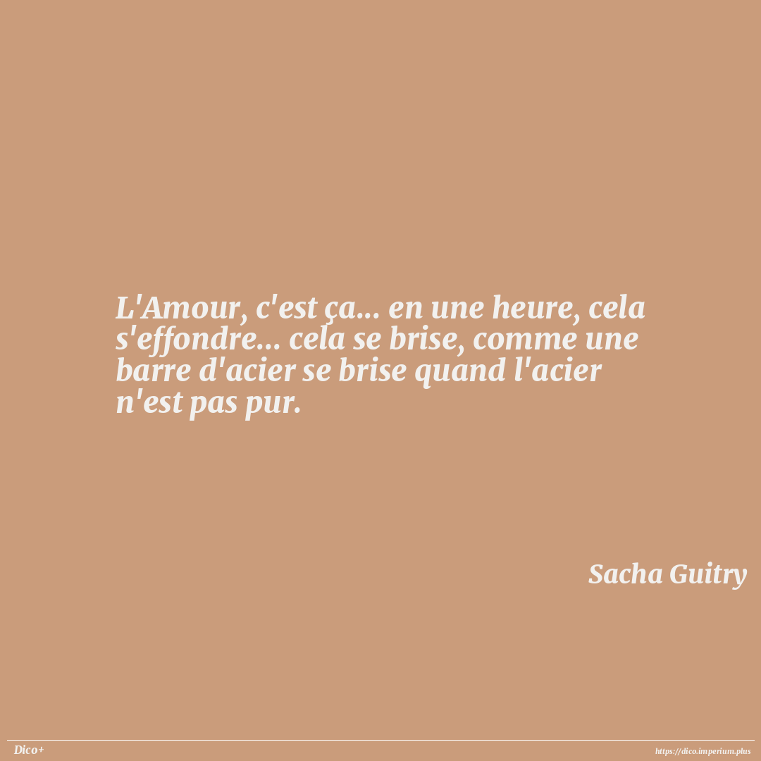 L'Amour, c'est ça... en une heure, cela s'effondre... cela se brise, comme une barre d'acier se brise quand l'acier n'est pas pur.
