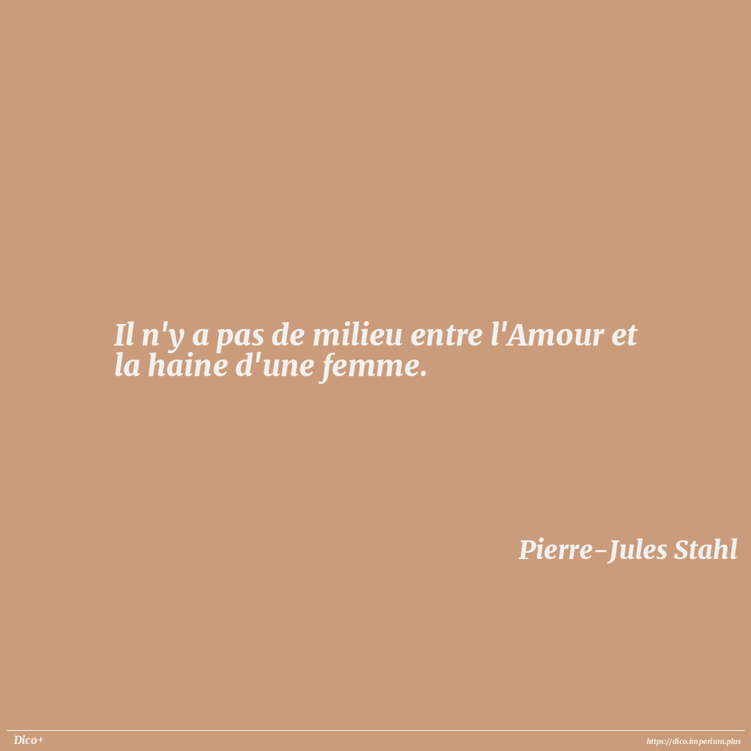 Il n'y a pas de milieu entre l'Amour et la haine d'une femme.
