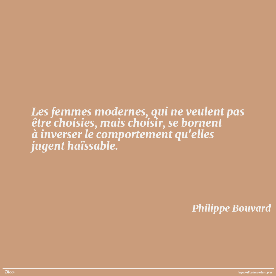 Les femmes modernes, qui ne veulent pas être choisies, mais choisir, se bornent à inverser le comportement qu'elles jugent haïssable.