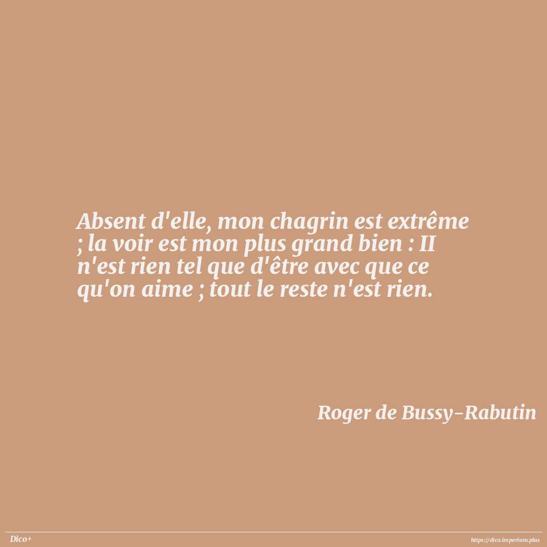 Absent d'elle, mon chagrin est extrême ; la voir est mon plus grand bien : II n'est rien tel que d'être avec que ce qu'on aime ; tout le reste n'est rien.