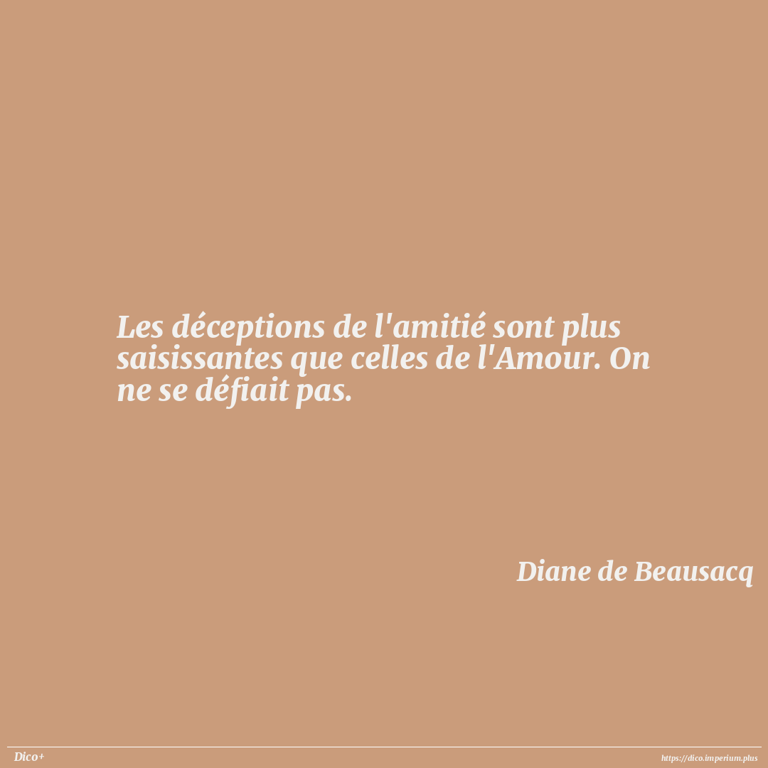 Les déceptions de l'amitié sont plus saisissantes que celles de l'Amour. On ne se défiait pas.