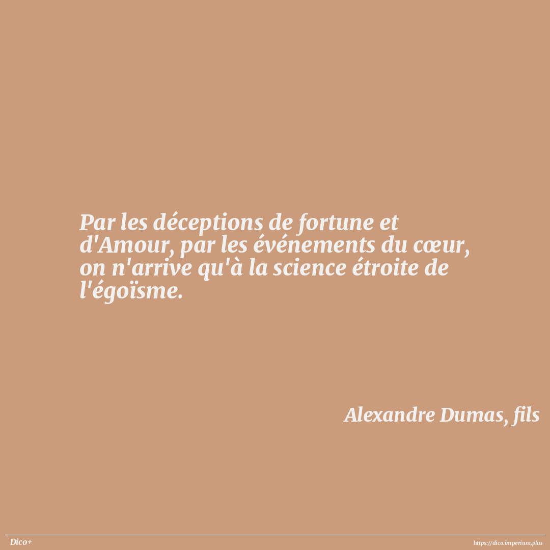 Par les déceptions de fortune et d'Amour, par les événements du cœur, on n'arrive qu'à la science étroite de l'égoïsme.