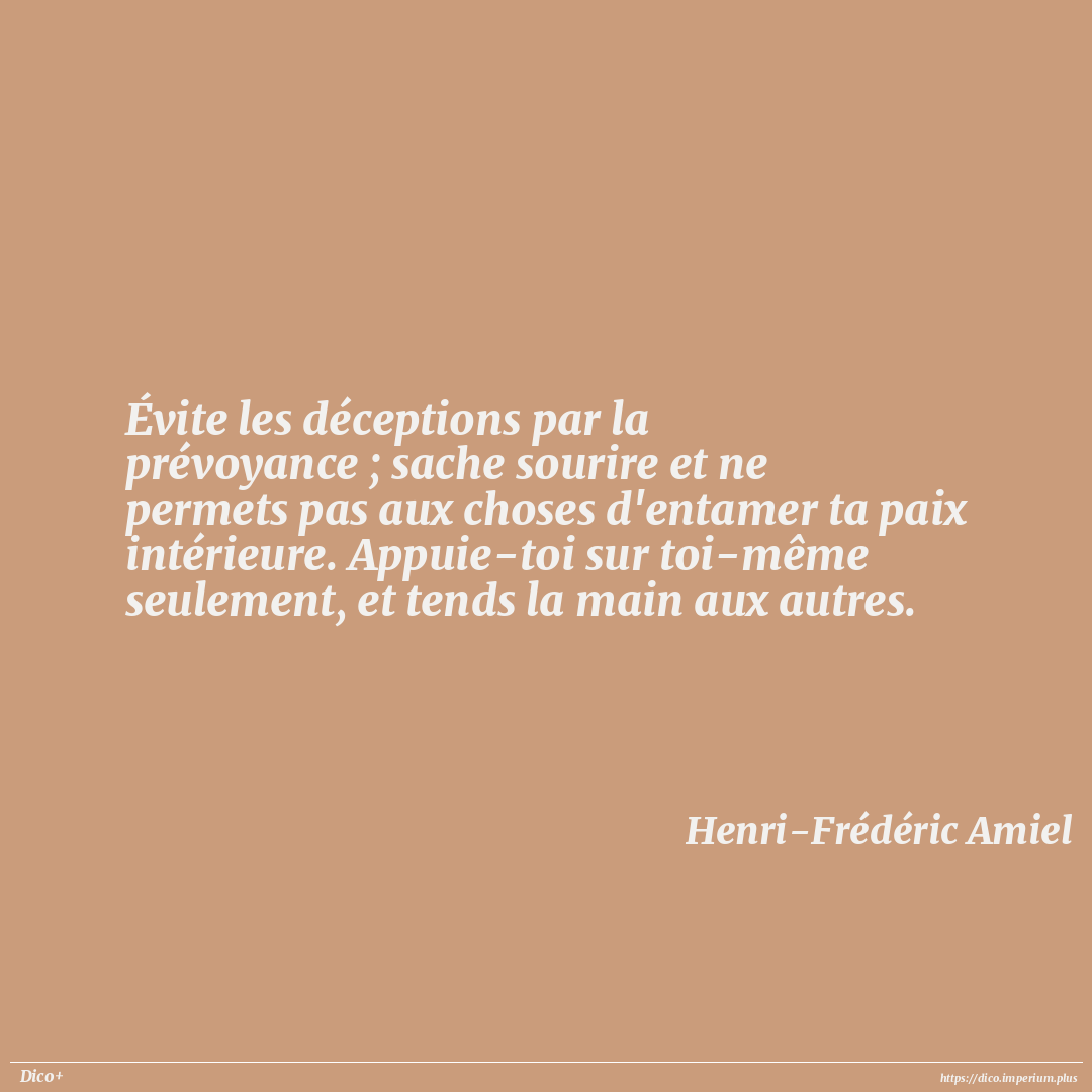 Évite les déceptions par la prévoyance ; sache sourire et ne permets pas aux choses d'entamer ta paix intérieure. Appuie-toi sur toi-même seulement, et tends la main aux autres.