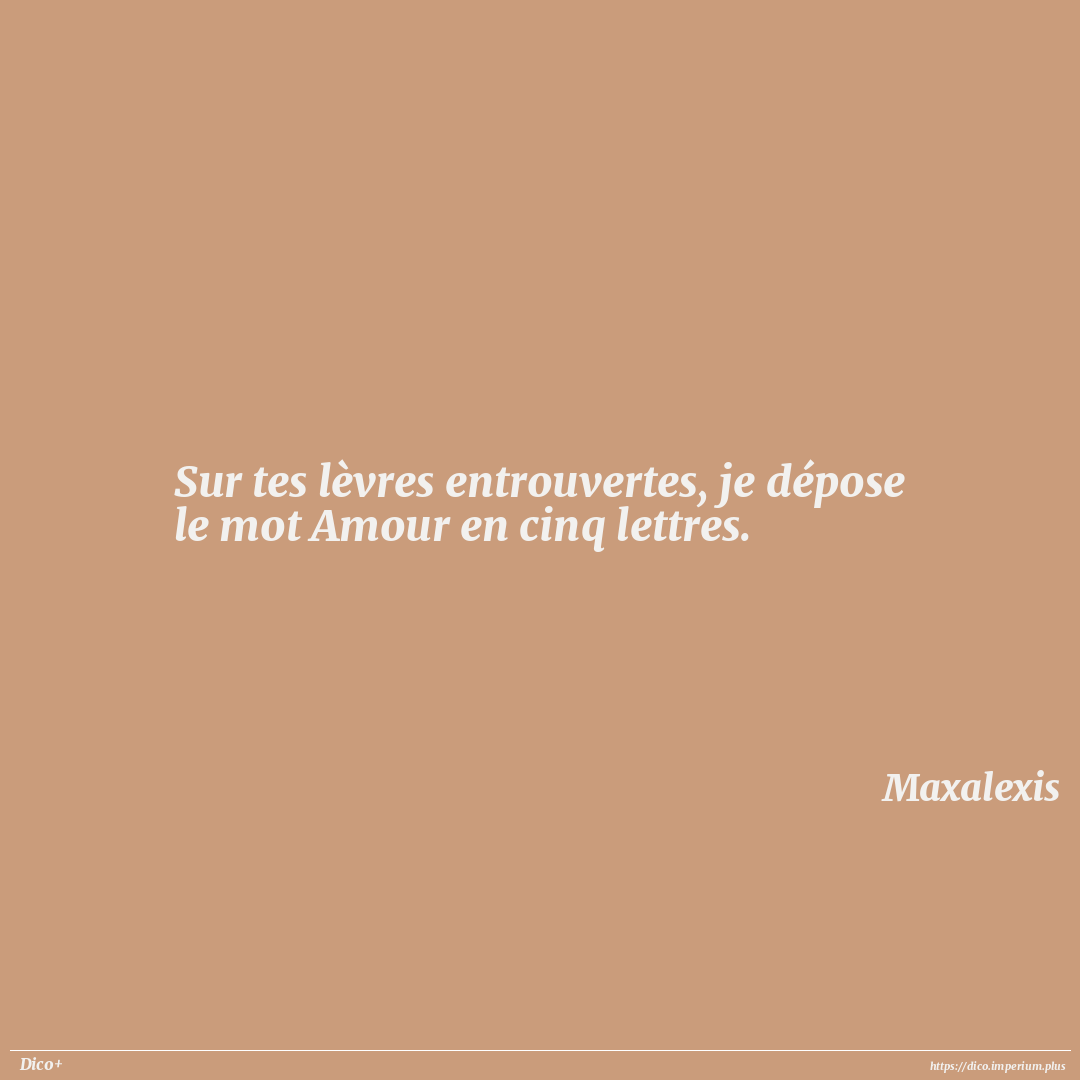 Sur tes lèvres entrouvertes, je dépose le mot Amour en cinq lettres.