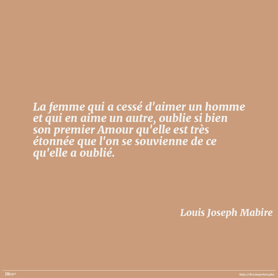 La femme qui a cessé d'aimer un homme et qui en aime un autre, oublie si bien son premier Amour qu'elle est très étonnée que l'on se souvienne de ce qu'elle a oublié.