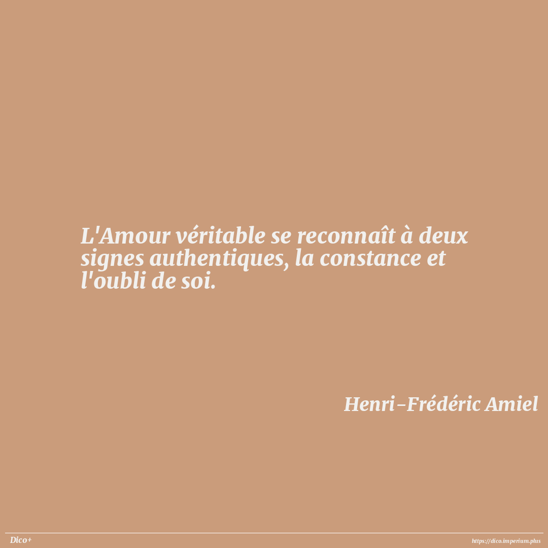 L'Amour véritable se reconnaît à deux signes authentiques, la constance et l'oubli de soi.