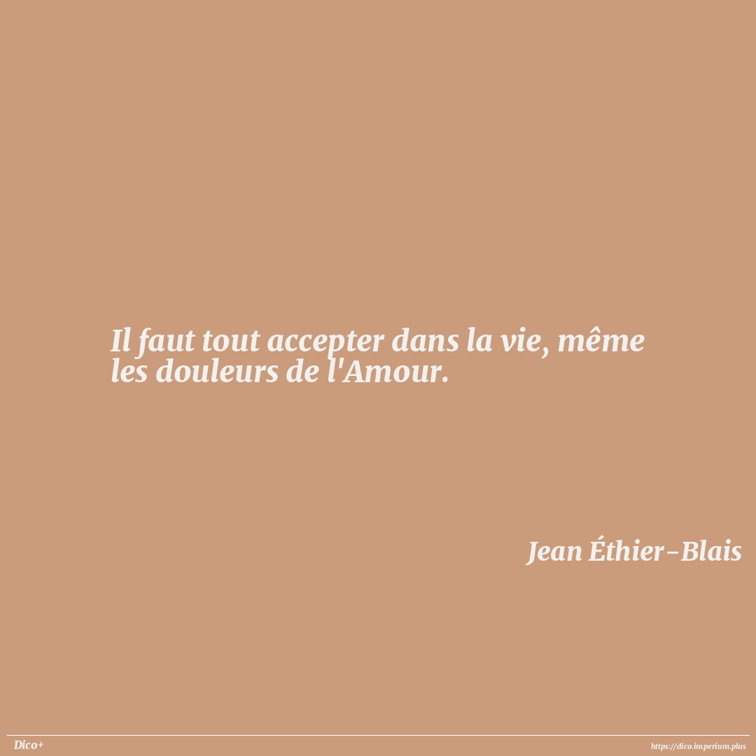 Il faut tout accepter dans la vie, même les douleurs de l'Amour.