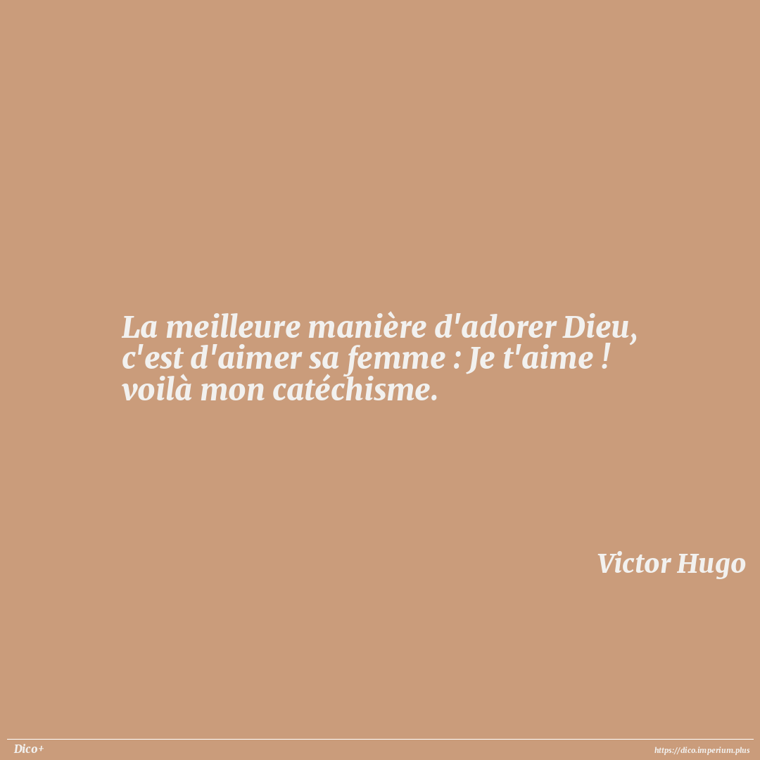La meilleure manière d'adorer Dieu, c'est d'aimer sa femme : Je t'aime ! voilà mon catéchisme.