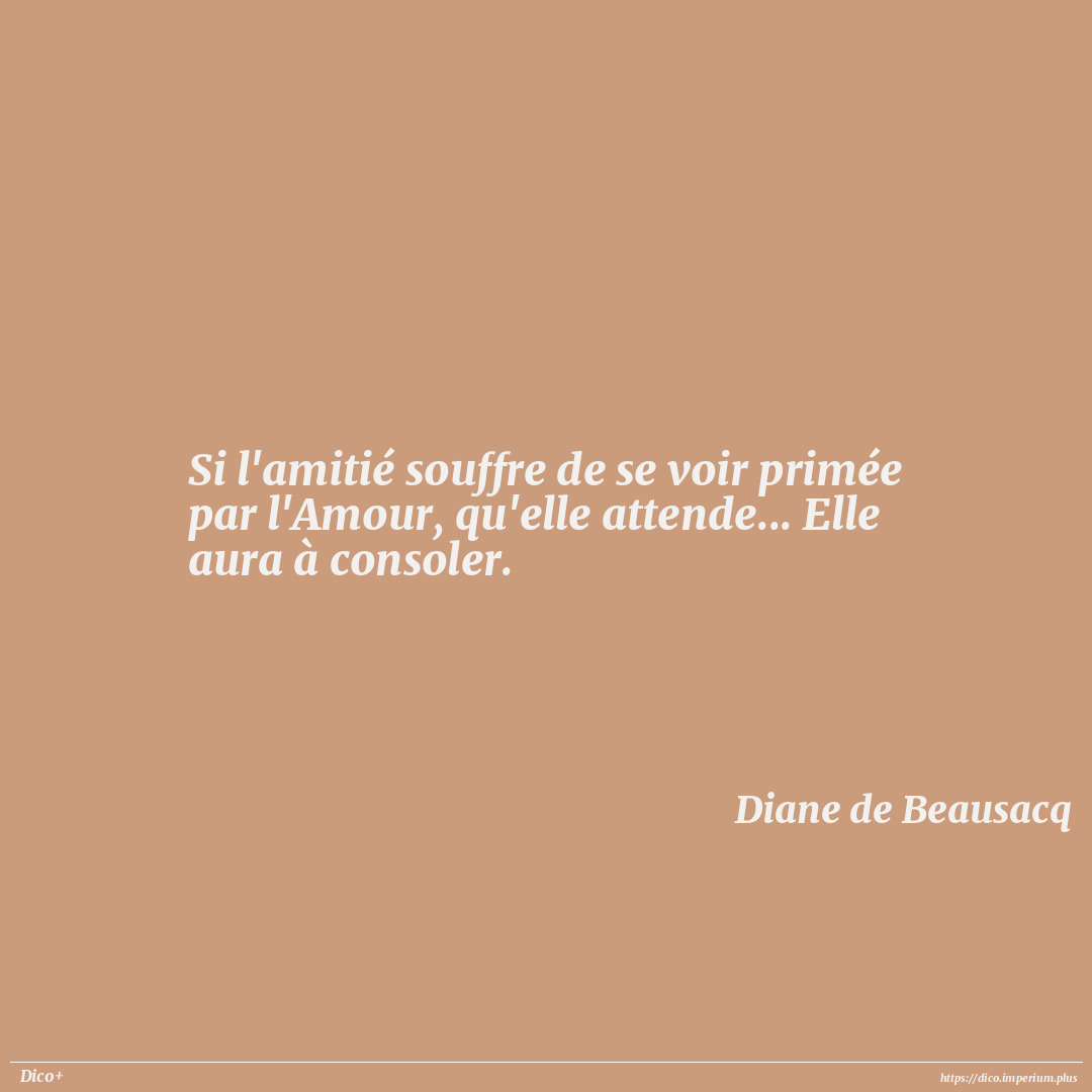 Si l'amitié souffre de se voir primée par l'Amour, qu'elle attende... Elle aura à consoler.