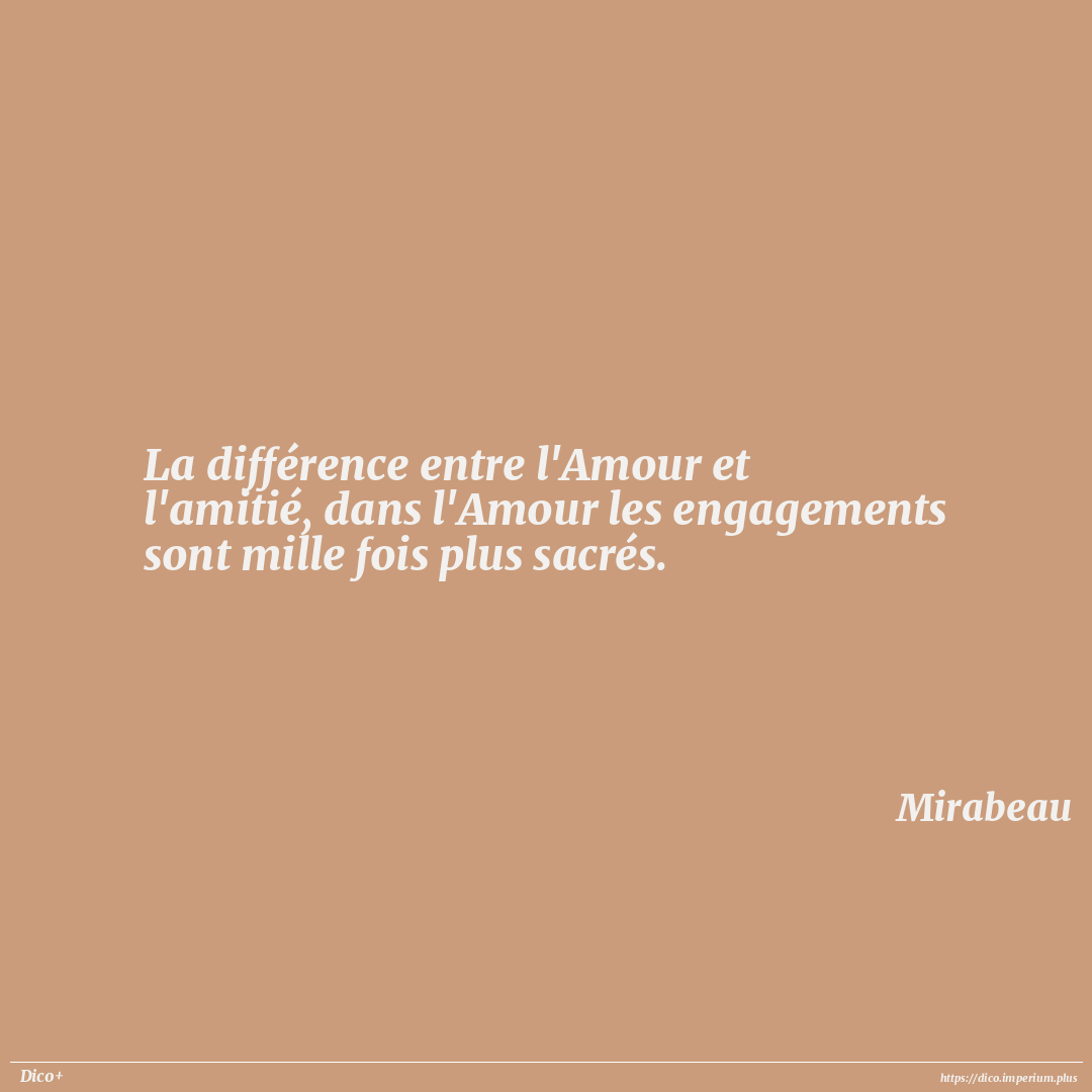 La différence entre l'Amour et l'amitié, dans l'Amour les engagements sont mille fois plus sacrés.
