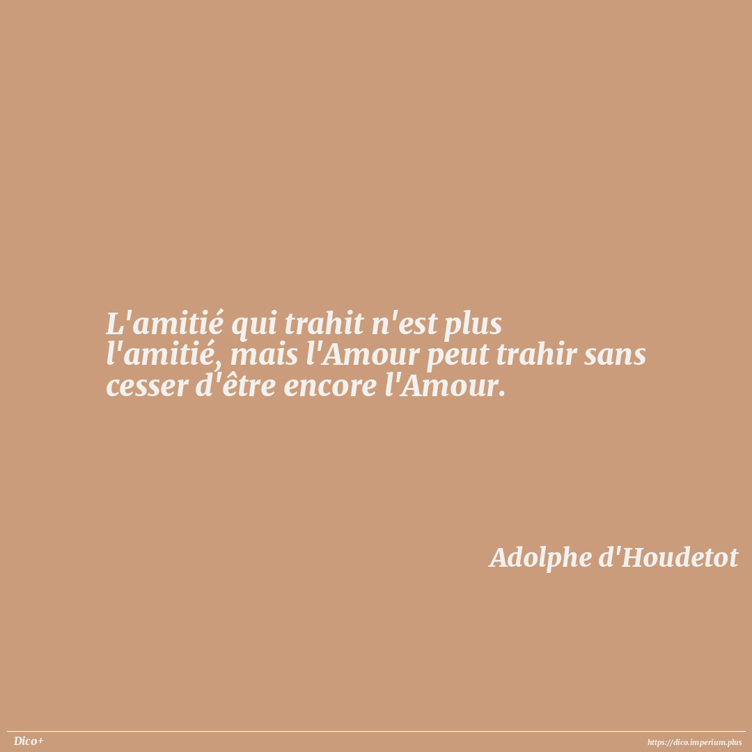L'amitié qui trahit n'est plus l'amitié, mais l'Amour peut trahir sans cesser d'être encore l'Amour.