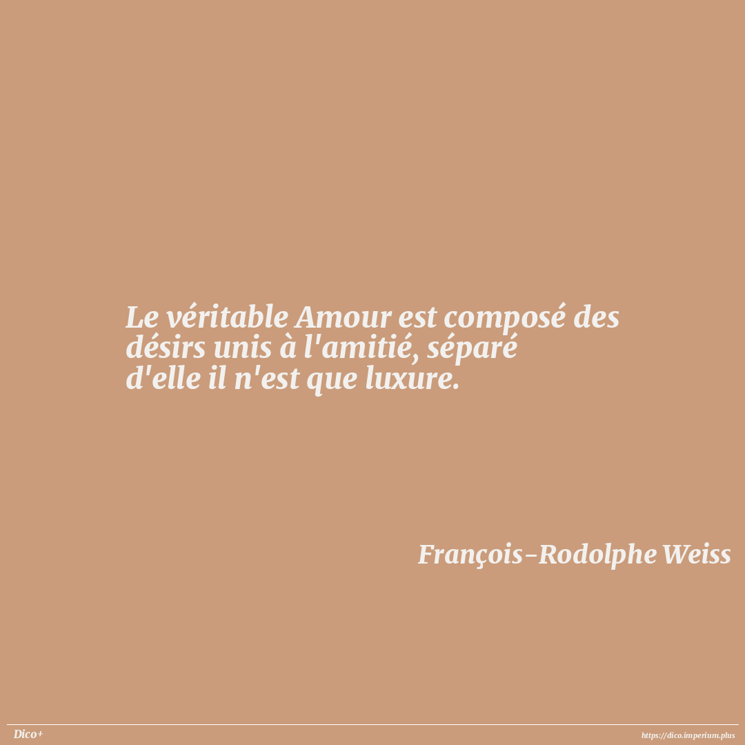 Le véritable Amour est composé des désirs unis à l'amitié, séparé d'elle il n'est que luxure.