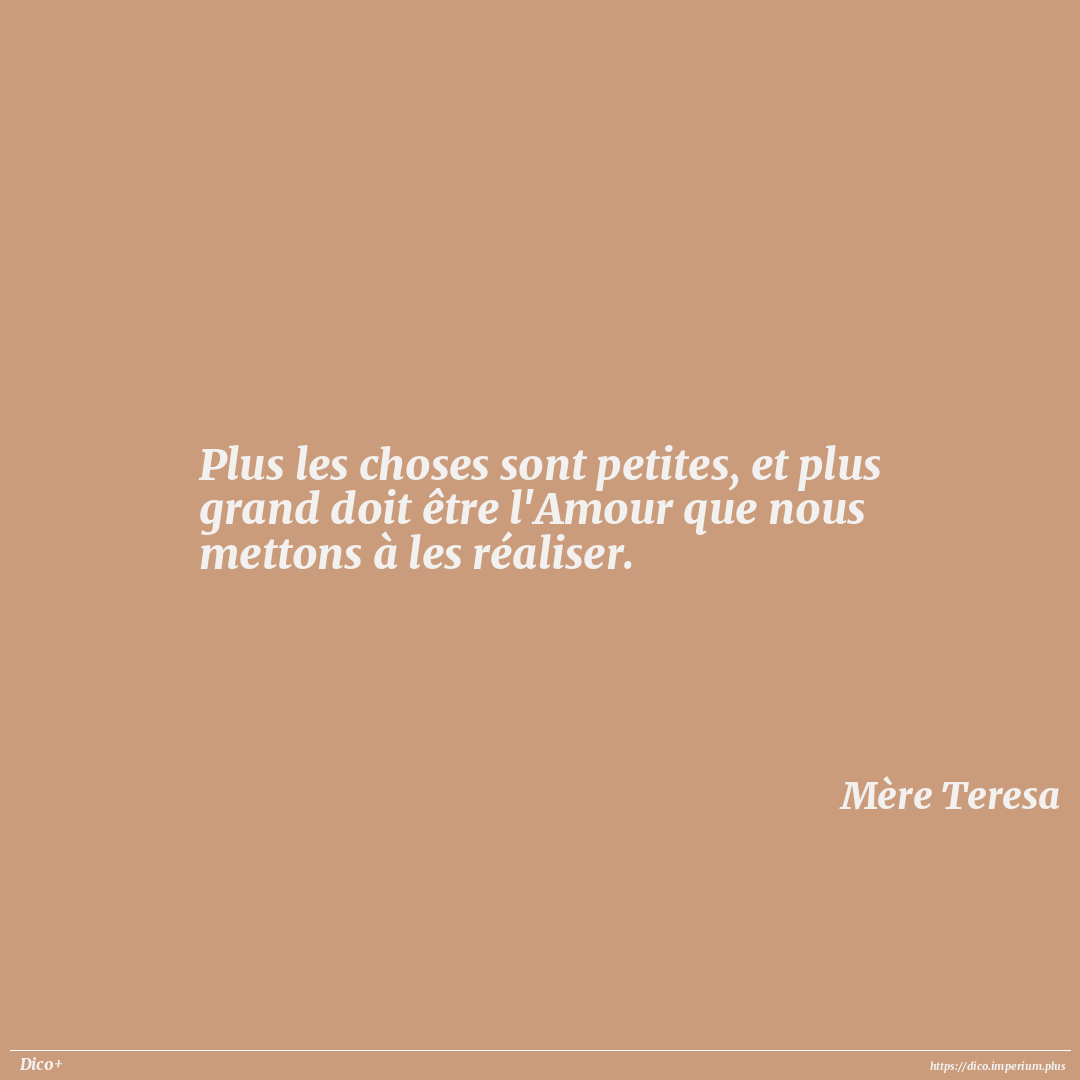 Plus les choses sont petites, et plus grand doit être l'Amour que nous mettons à les réaliser.