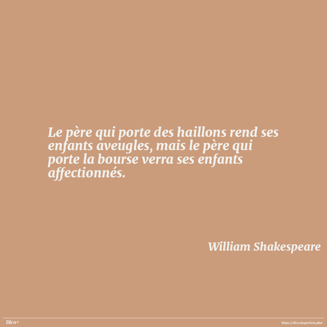 Le père qui porte des haillons rend ses enfants aveugles, mais le père qui porte la bourse verra ses enfants affectionnés.