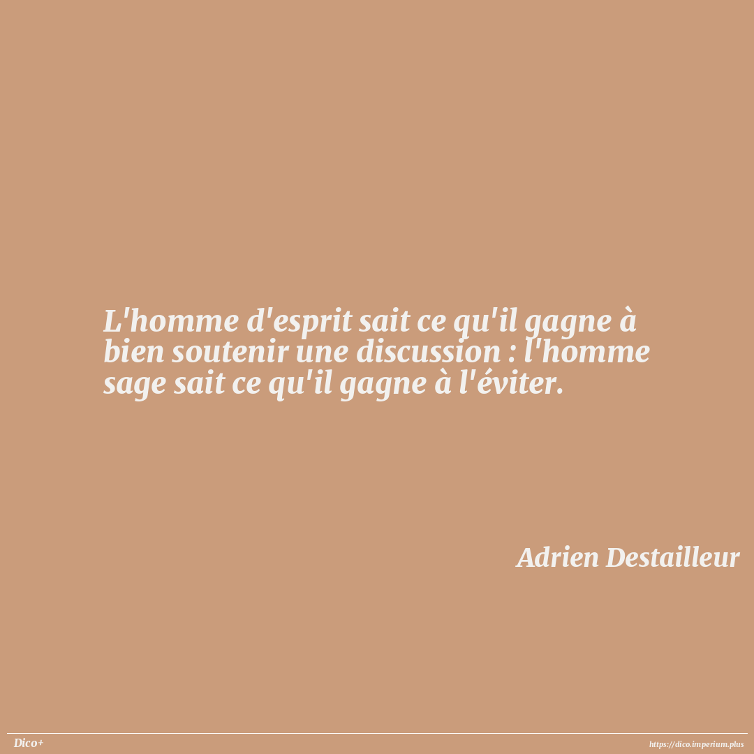 L'homme d'esprit sait ce qu'il gagne à bien soutenir une discussion : l'homme sage sait ce qu'il gagne à l'éviter.