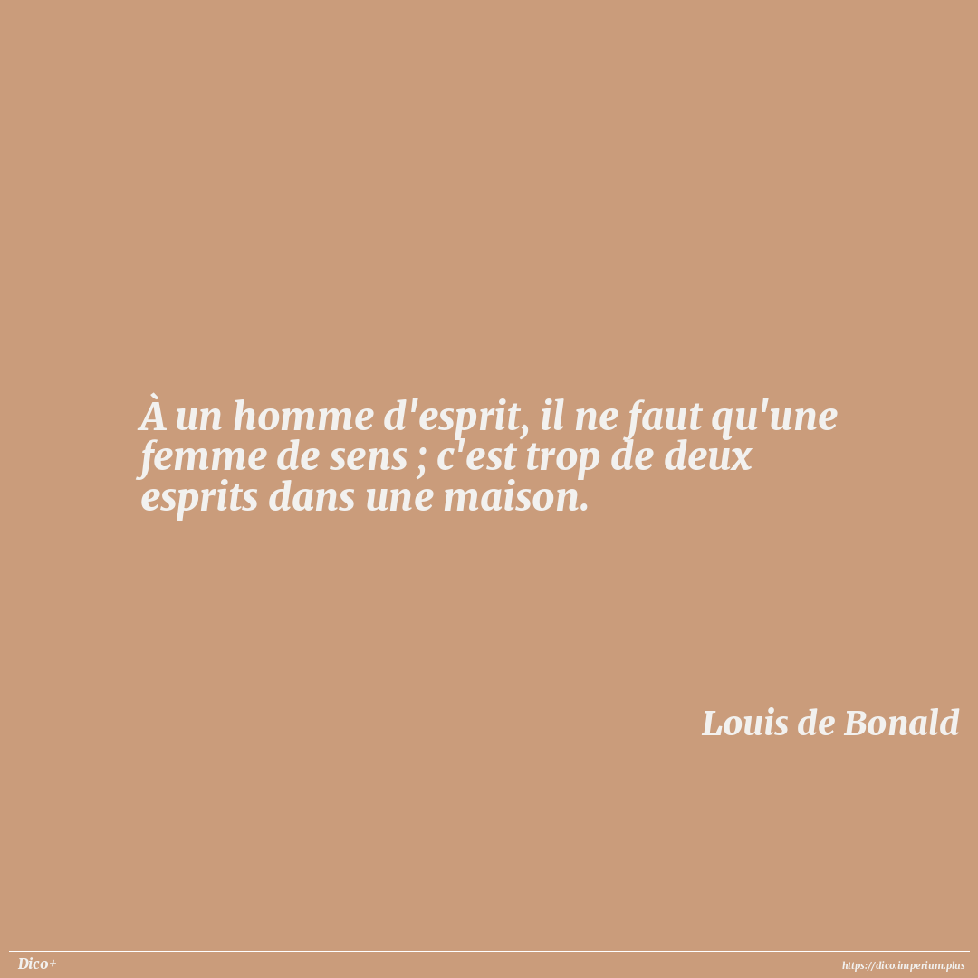 À un homme d'esprit, il ne faut qu'une femme de sens ; c'est trop de deux esprits dans une maison.