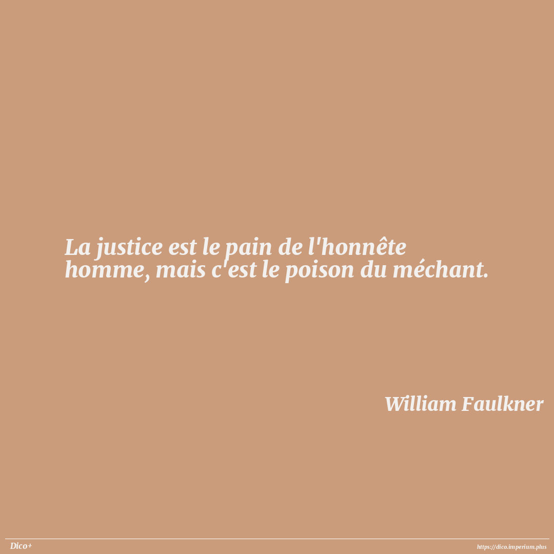 La justice est le pain de l'honnête homme, mais c'est le poison du méchant.