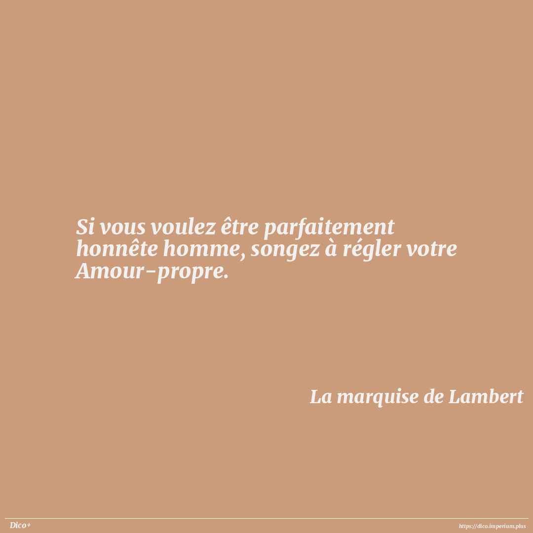 Si vous voulez être parfaitement honnête homme, songez à régler votre Amour-propre.