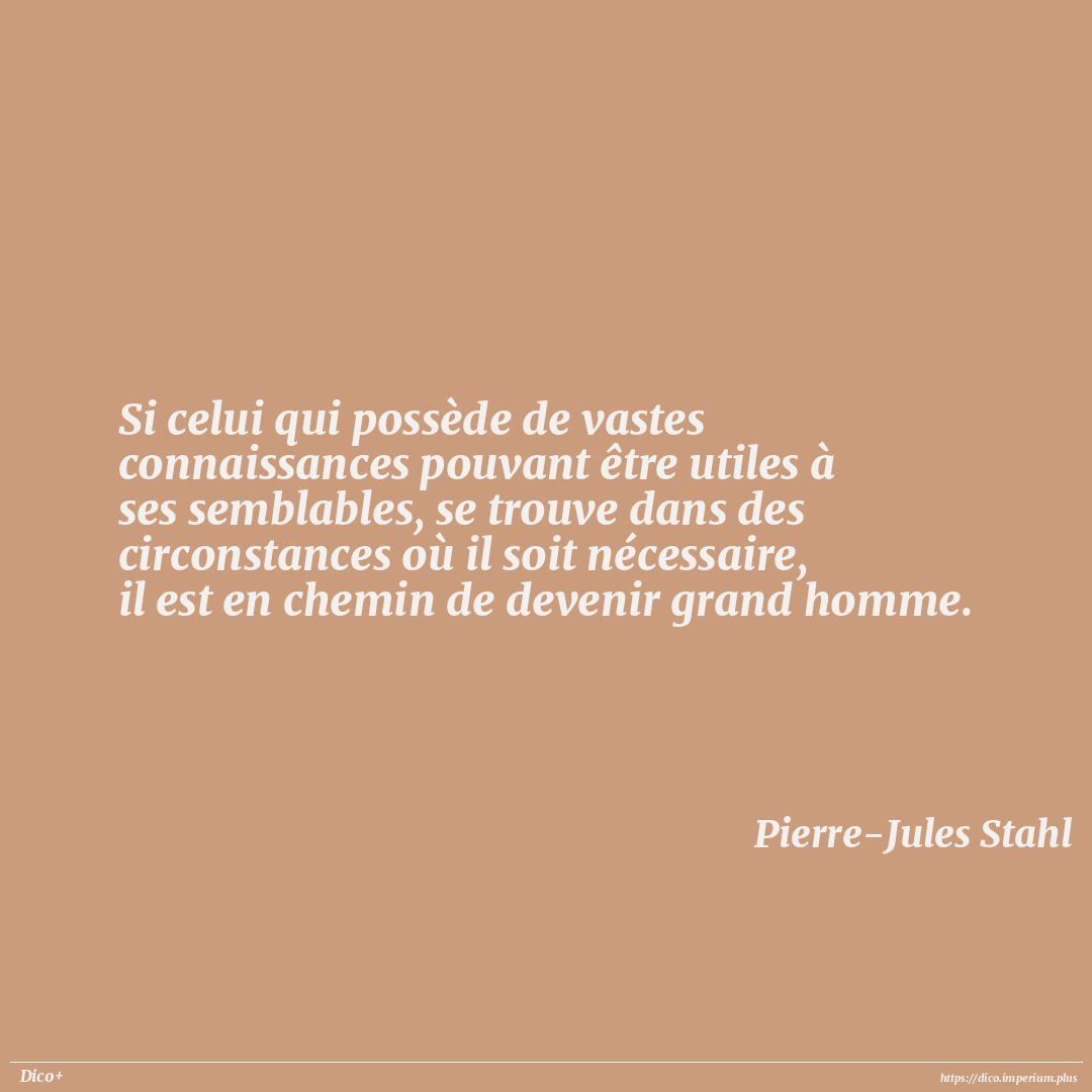 Si celui qui possède de vastes connaissances pouvant être utiles à ses semblables, se trouve dans des circonstances où il soit nécessaire, il est en chemin de devenir grand homme.