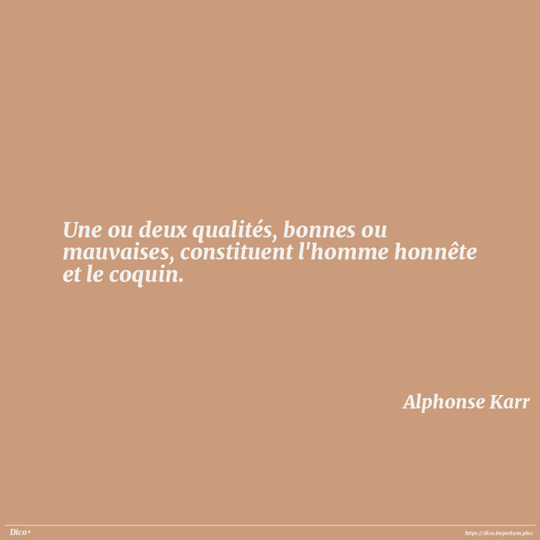 Une ou deux qualités, bonnes ou mauvaises, constituent l'homme honnête et le coquin.