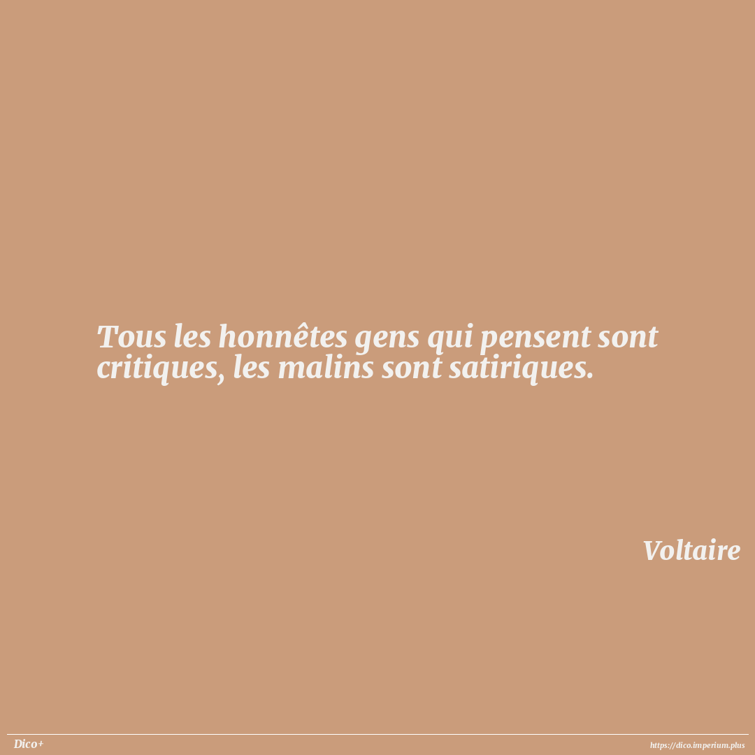 Tous les honnêtes gens qui pensent sont critiques, les malins sont satiriques.