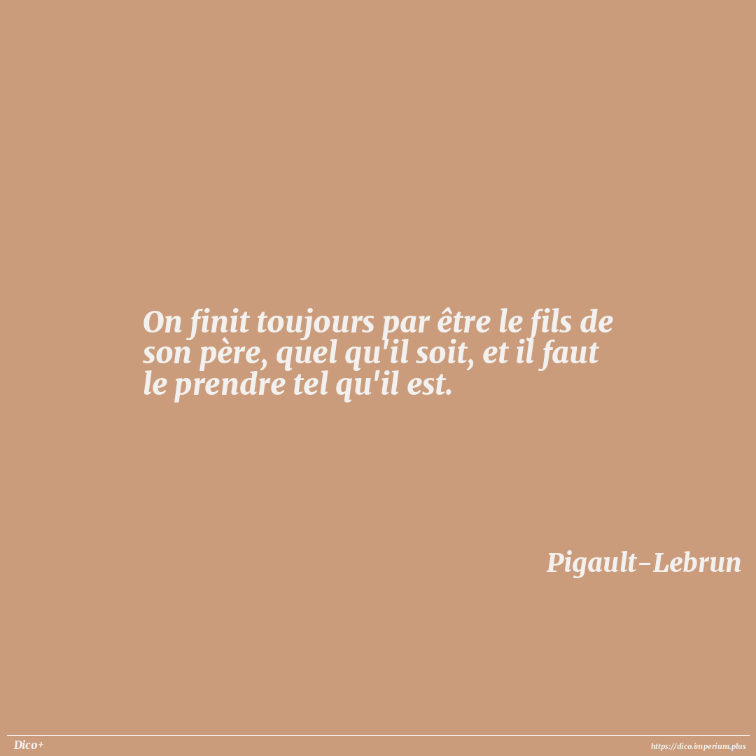 On finit toujours par être le fils de son père, quel qu'il soit, et il faut le prendre tel qu'il est.