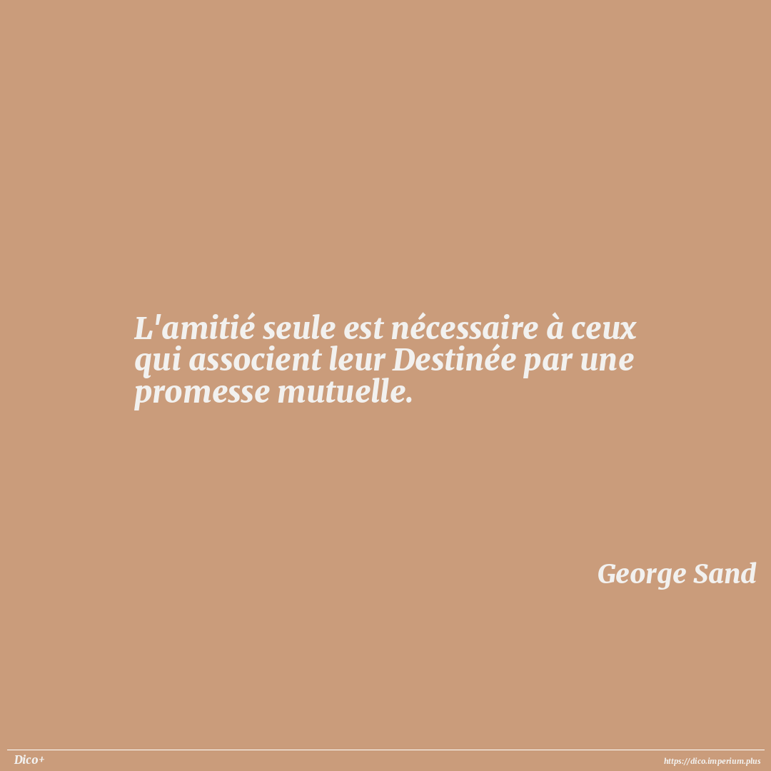 L'amitié seule est nécessaire à ceux qui associent leur Destinée par une promesse mutuelle.