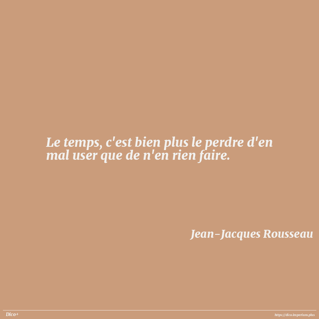Le temps, c'est bien plus le perdre d'en mal user que de n'en rien faire.
