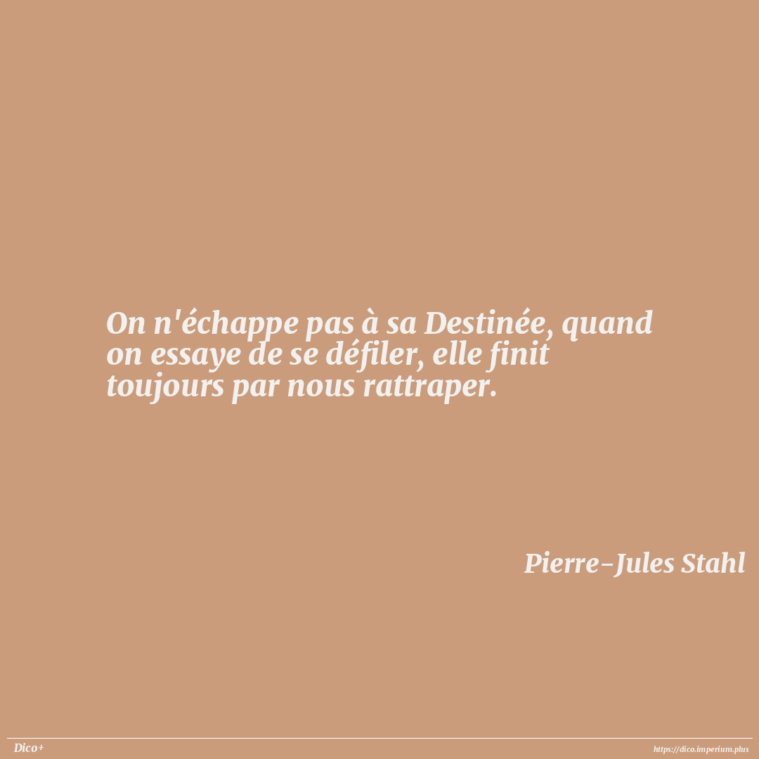 On n'échappe pas à sa Destinée, quand on essaye de se défiler, elle finit toujours par nous rattraper.